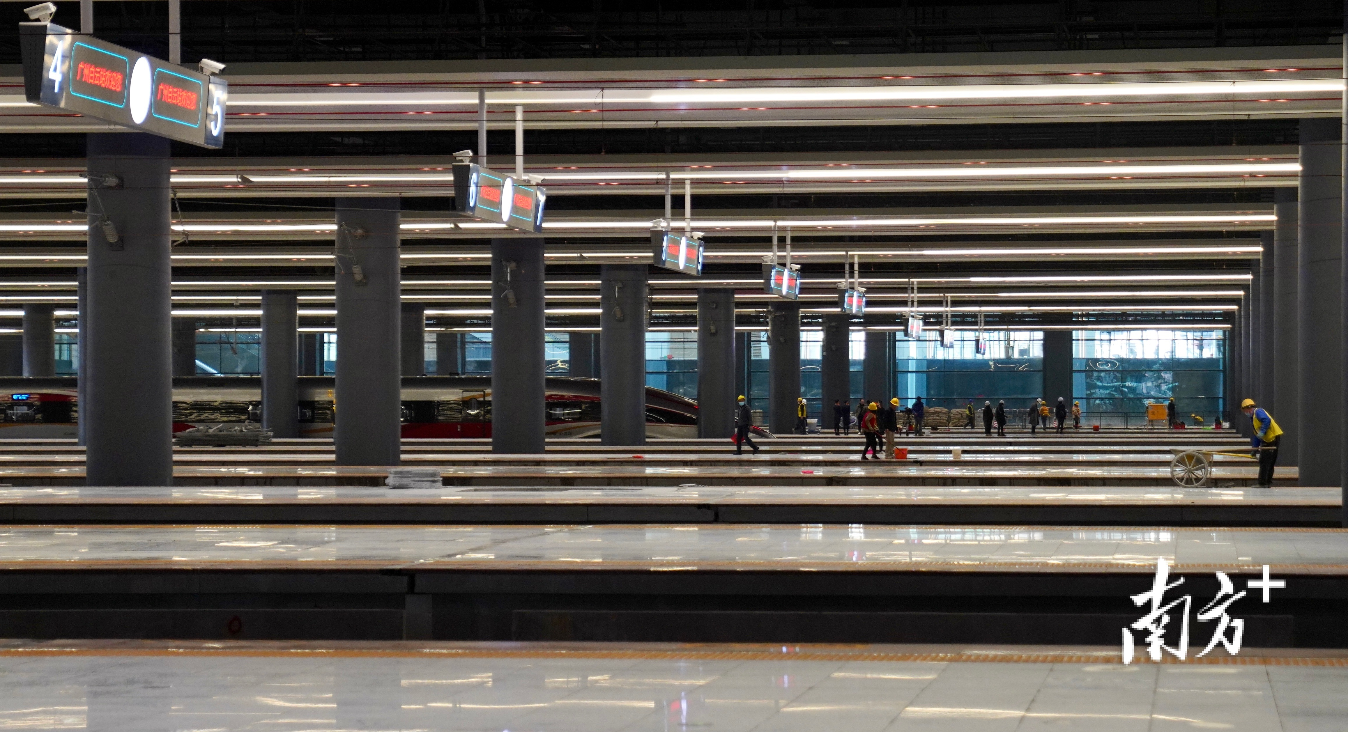 广州白云站行将通车。责任主说念主员抢握终末的工序。